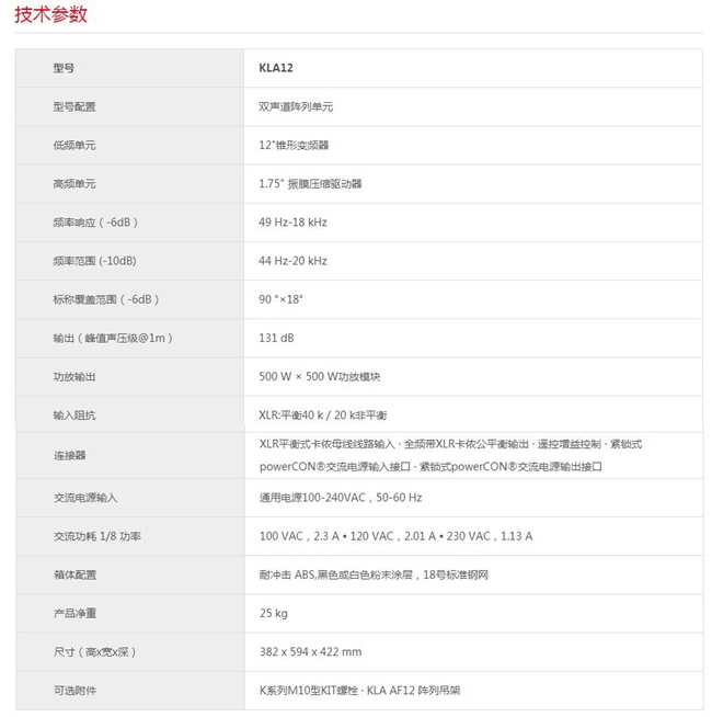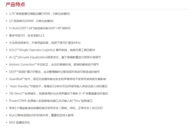KLA系列線陣列是一款集強大功能和復(fù)雜技術(shù)于一體的線陣列產(chǎn)品,為QSC線陣列家族增加了新的種類。憑借其簡單的吊掛、連接和使用,KLA可以在更短的時間展開和配置。這款有源的固定角度線陣列揚聲器面向各類固定安裝和流動應(yīng)用,旨在滿足娛樂,現(xiàn)場演出、會議等需要使用線陣列的場所。黑色和白色可供選擇。